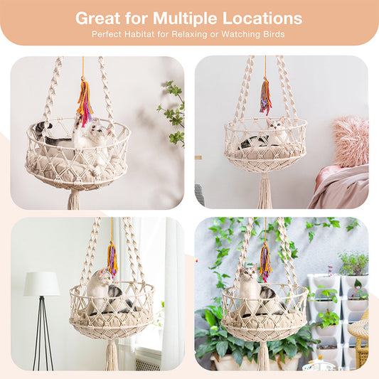 Mewoofun Handwoven Cat Window Perch Bed With Hanging Kit Hammock For Indoor Outdoor Cats Sleeping Climbing Playing