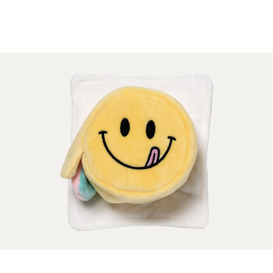 Barkwow Interactive Smiley Face Crinkle Cake Dog Toy with Hidden Treat Compartments and Pull-Out Plush Strips